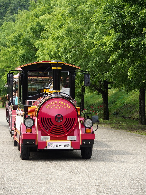 花フェスタ記念公園内を走る可愛い園内バス「花ポッポ号」